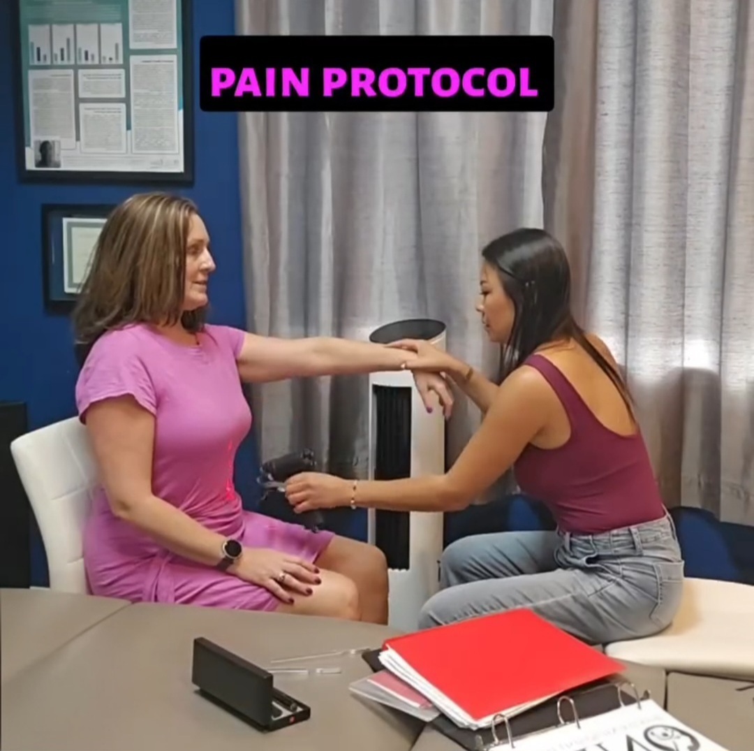 Visits with her also often include muscle testing, passive and active rehabilitation, and cold laser therapy.